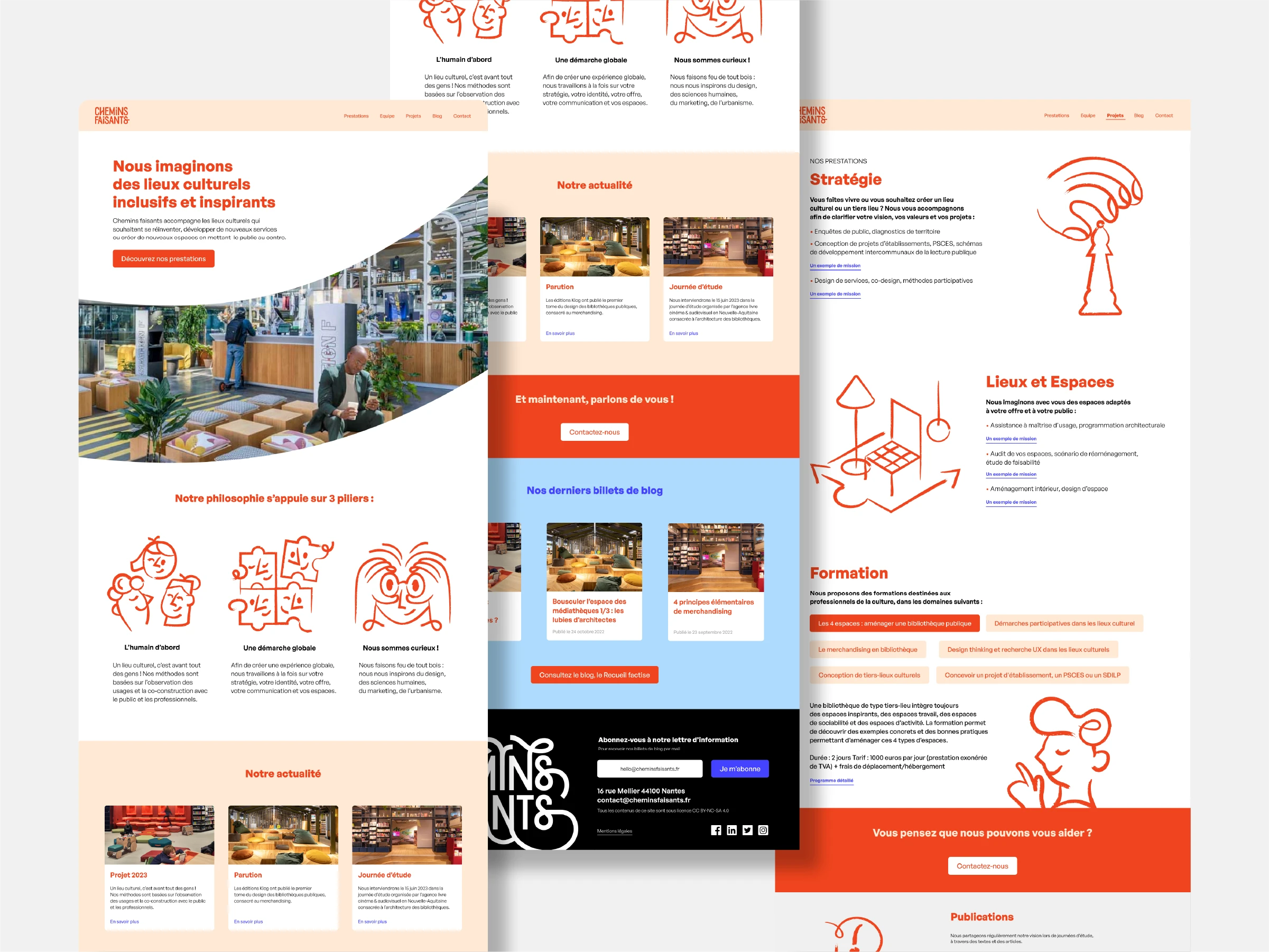 Chemins Faisants accompagne les lieux culturels qui souhaitent se réinventer en mettant le public au centre. Leur approche repose sur trois piliers : l’humain d’abord, des méthodes basées sur l’observation et la co-construction avec le public, et la création de lieux de vie inspirants.