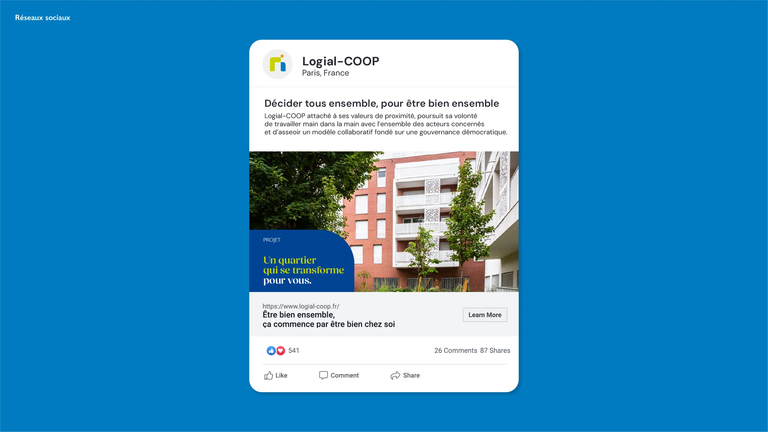 J'ai également pris en charge la conception des supports de communication, tant web que print, ainsi que le développement du ton rédactionnel, favorisant un dialogue complice et authentique avec les locataires. Grâce à un langage empreint d'humour, certaines situations sont dédramatisées, renforçant ainsi le lien de confiance avec les résidents.